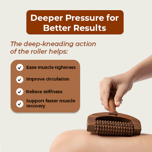 DURABLE. SUSTAINABLE. RELIABLE: Crafted from durable natural wood for long-lasting use, it offers a sustainable alternative to plastic massagers while maintaining strength, stability, and a smooth glide across the skin.