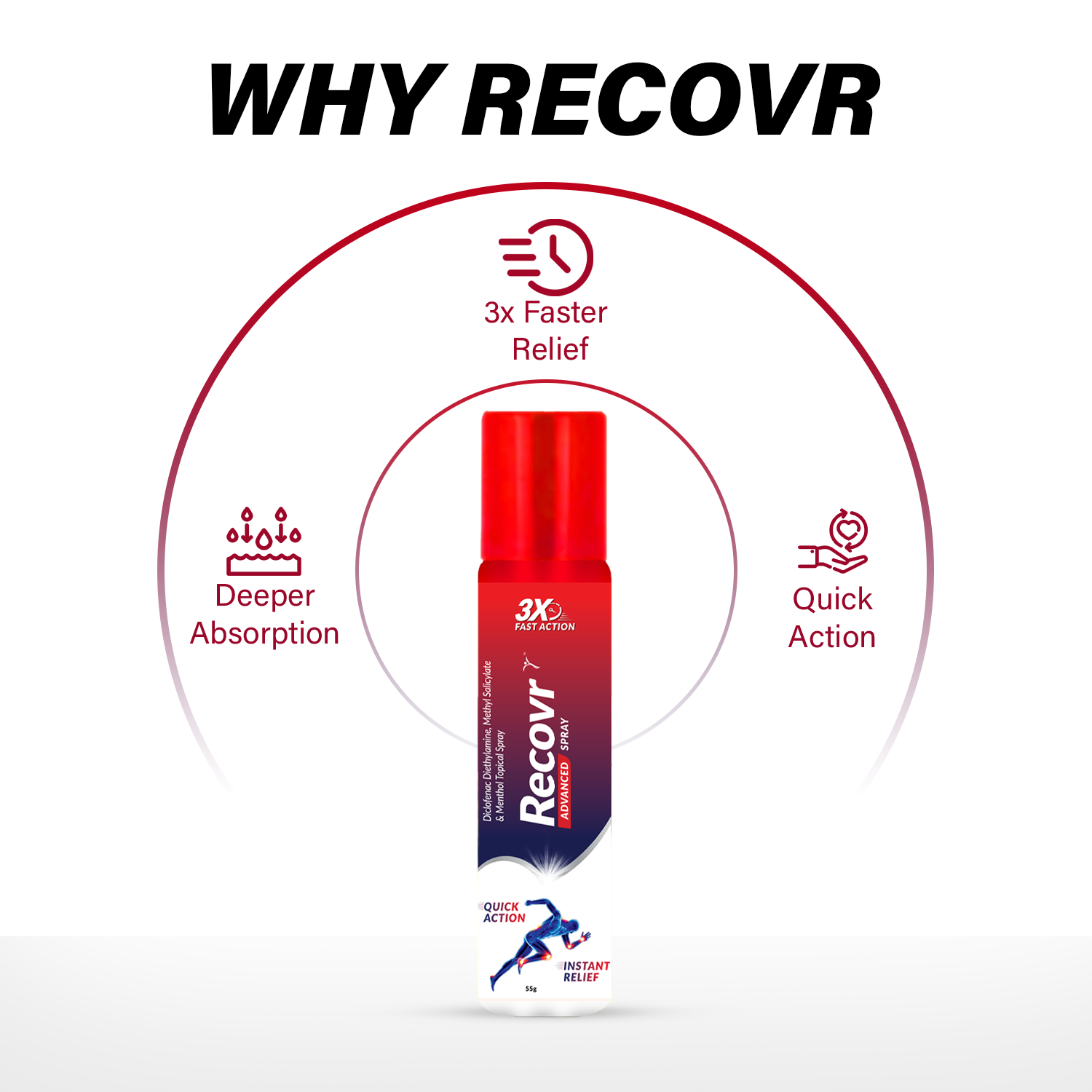 In some cases, Recovr Advanced Pain Relief Spray might cause mild irritation on the skin. Worry not! This happens because the powerful ingredients in the spray work effectively on the target area, causing a little bit of irritation.